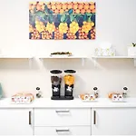 Інтер'єр номерів доповнений звуконепроникними вікнами, а для комфортного перебування передбачили письмовий стіл. Комфортному перебуванню сприяють такі зручності, як система клімат-контролю, а також кавоварка. У ванних кімнатах є біде, окремий туалет і душ. Крім того, у них надаються халати і рушники.